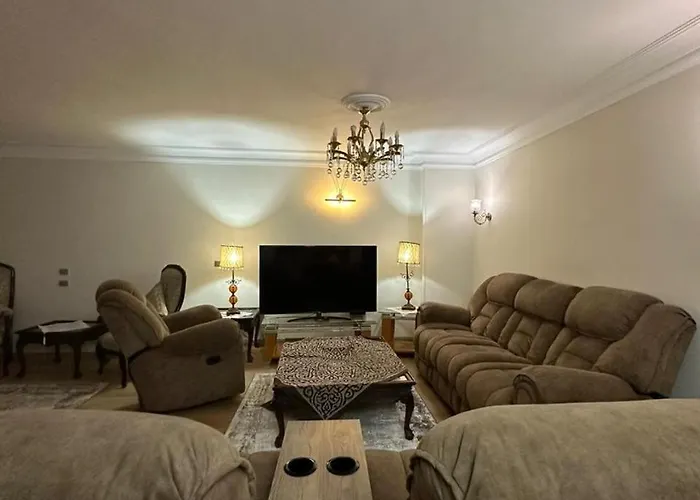 The spacious 200 m² Airport Oasis-3-Bedroom Luxury Flat Cairo is located in Cairo, approximately a 10-minute drive from the Zoo, and pampers guests with a hot tub. 2.1 km from the 2-bedroom apartment you will find Golf Park and Dog Park.